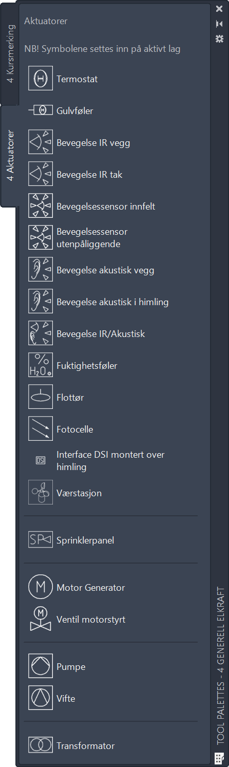 Aktuatorer er lys-, fuktighet- og varme-følere. Symbolene blir satt inn på aktivt lag.