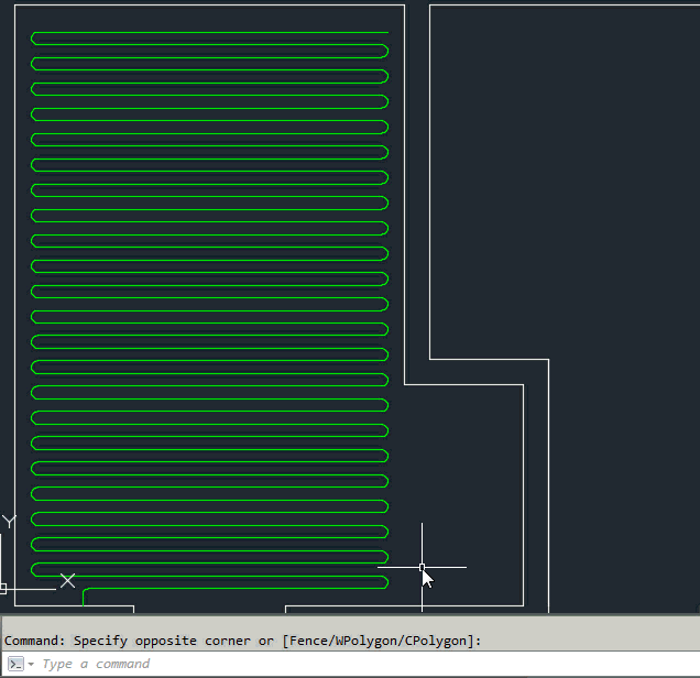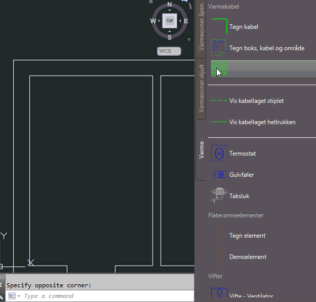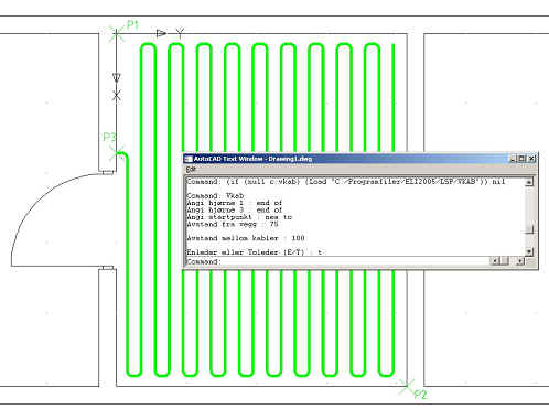 Komplett tegning av varmekabel gjøres ved å velge som vist nedenfor. Bruk LIST kommandoen for å lengden på kabelen.
