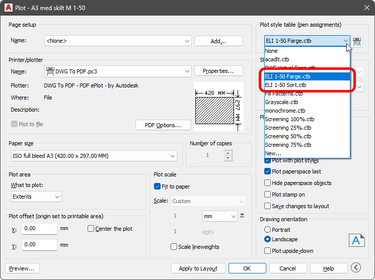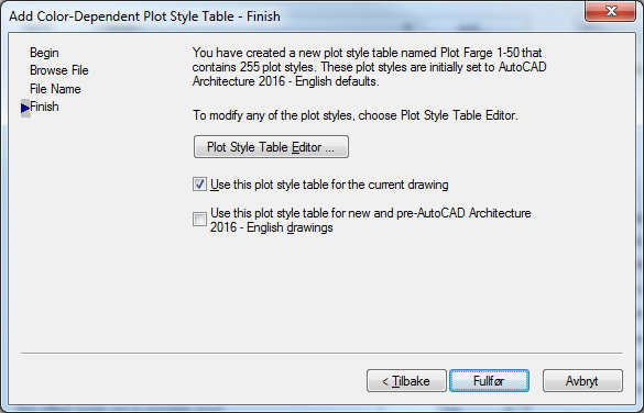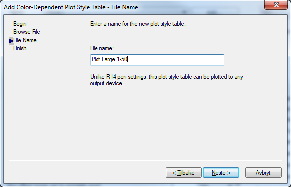 I plot style Table klikker du på knappene til høyre for å få satt opp riktige farger for Plot Farge 1-50.