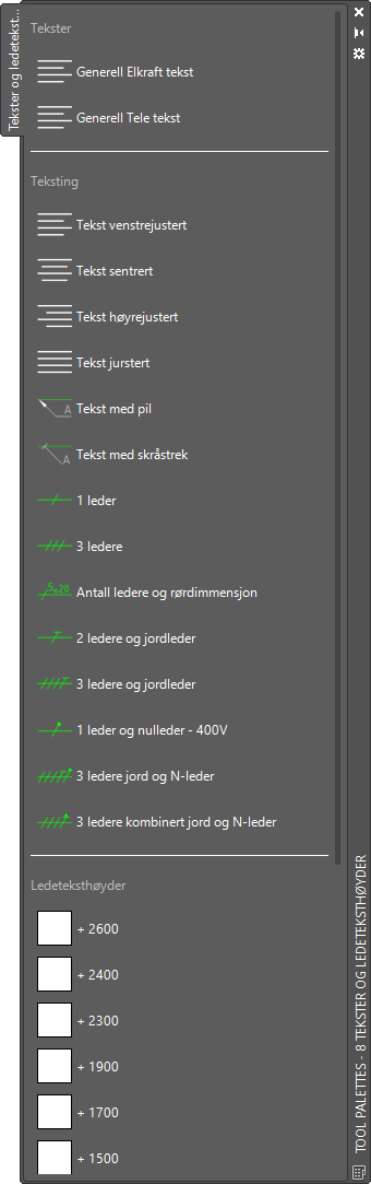 Fra verktøypalletten kursmerking kan du hente inn ferdige tekster for innsetting ved symboler. Husk å bruk riktig lag når du setter inn tekstene.
