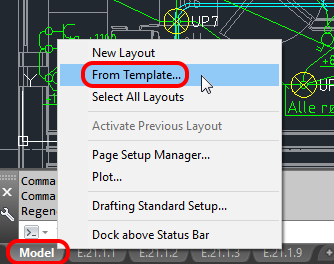 For å stette inn en mal, høyreklikk i fanene nederst i AutoCAD:
