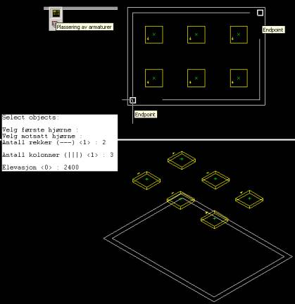 Plassering av armaturer | Utplassering av symboler i rader og kolonner. For eksempel armaturer. |