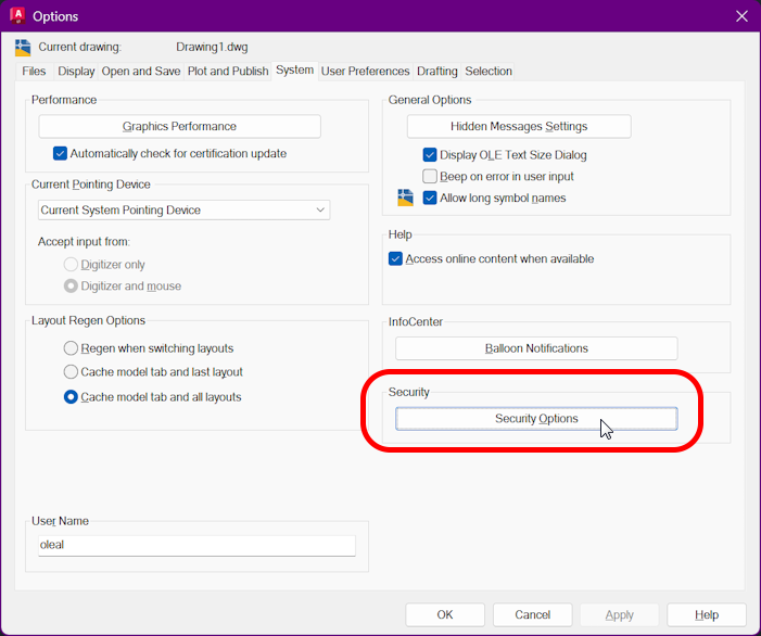 Se hva du må sjekke av valg for AutoCAD, AutoCAD LT og BricsCAD under: