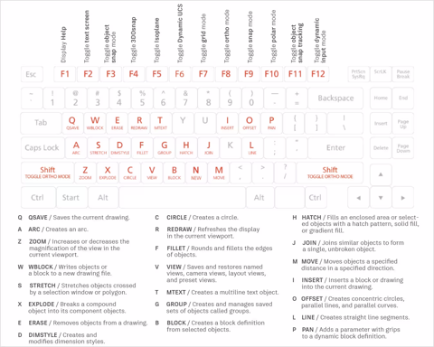 Utskrivbare maler for hurtigtaster og kommandoer kan du finne hos Autodesk!