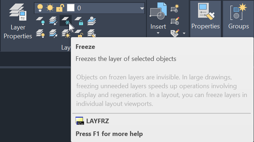 Frys lag som forstyrrer tegningen. En rask måte er å bruke kommandoen "LAYFRZ". Den fryser laget til entiteten man peker på.