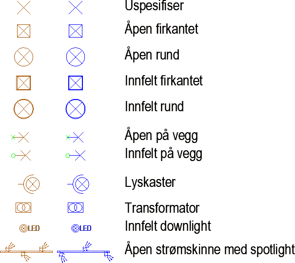 Listen med generelle armaturer, både for innendørs og utendørs, er oppdatert.