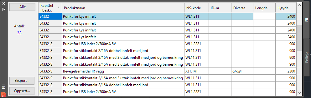 Mengdeliste til ELI PRO har fått en oppgradering. Egen kolonner for å vise og sette høyde til ELI-blokker.