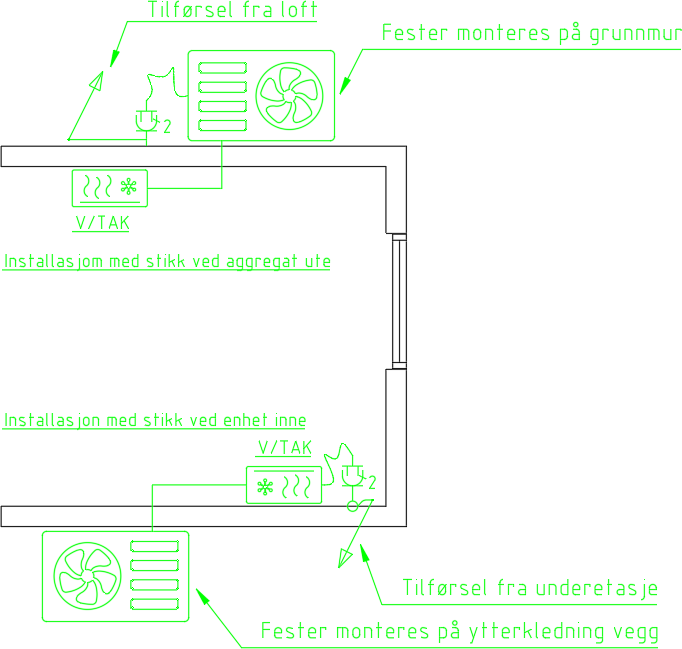 Eksempeltegning på bruk av varmepumpe: